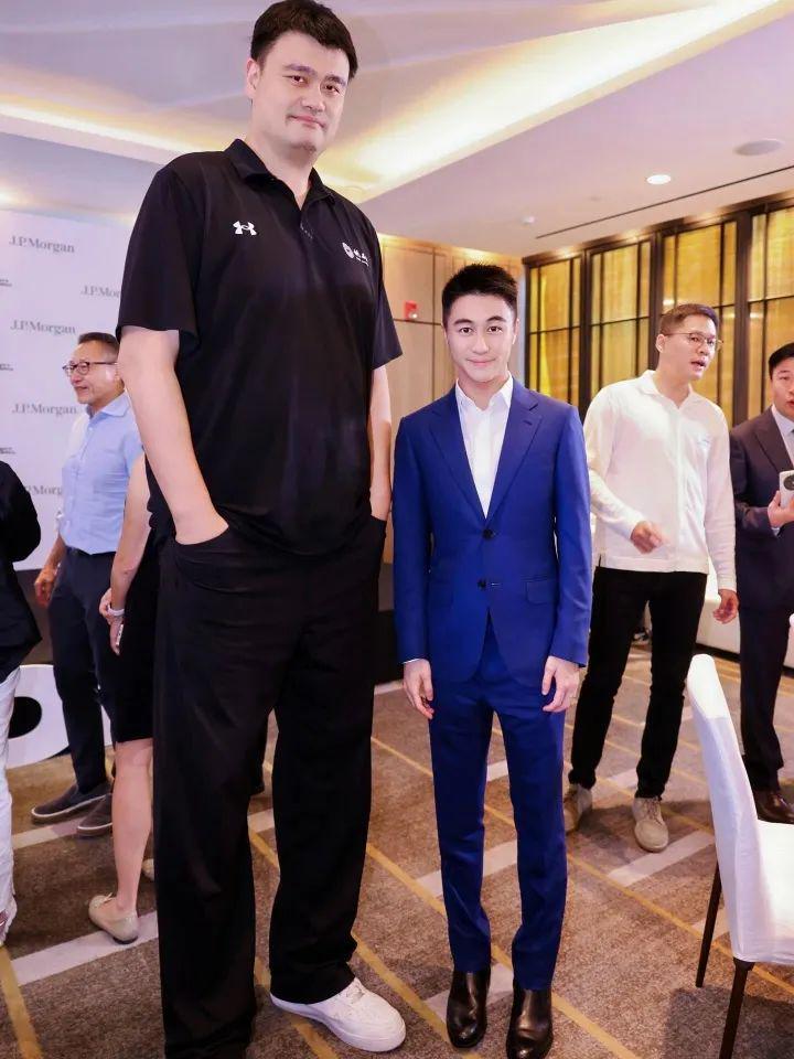 网友@京东方:跟姚明合影,何总掂脚了