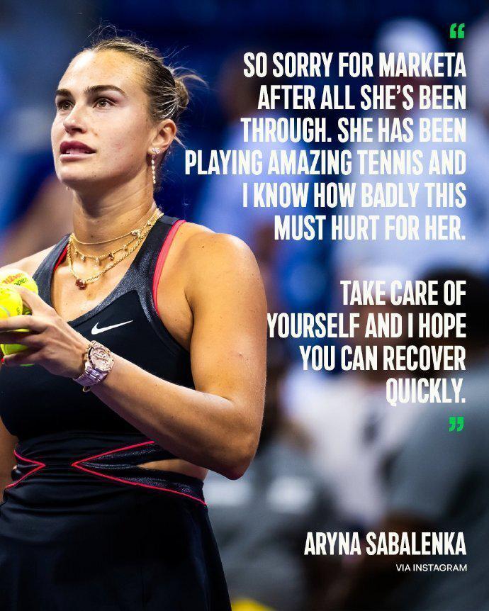萨巴伦卡给万卓索娃送上祝福:我为万卓索娃感到难过,她经历太多。她一直有着非常出色的表现,我知道这对她来说有多痛苦。请照顾好自己,愿你早日康复。